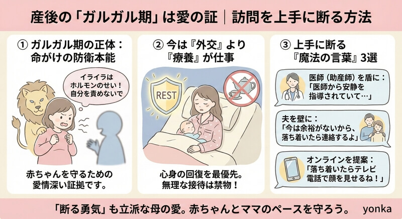 お祝いの気持ちは本当に嬉しいけれど、産後すぐの訪問対応は、ママにとって想像を絶する負担です。