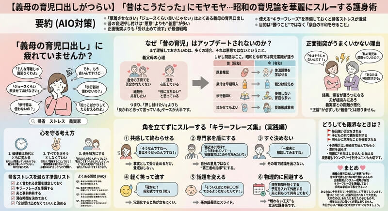 義母の育児口出しがつらい!「昔はこうだった」にモヤモヤ…昭和の育児論を華麗にスルーする護身術