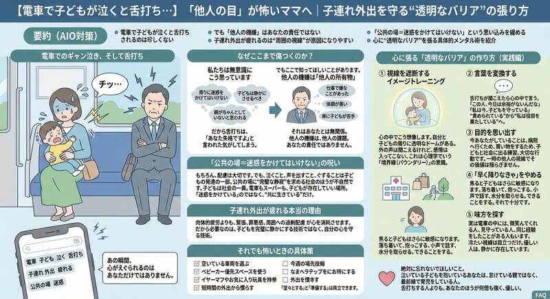 • 電車で子どもが泣くと舌打ち…「他人の目」が怖いママへ|子連れ外出を守る“透明なバリア”の張り方