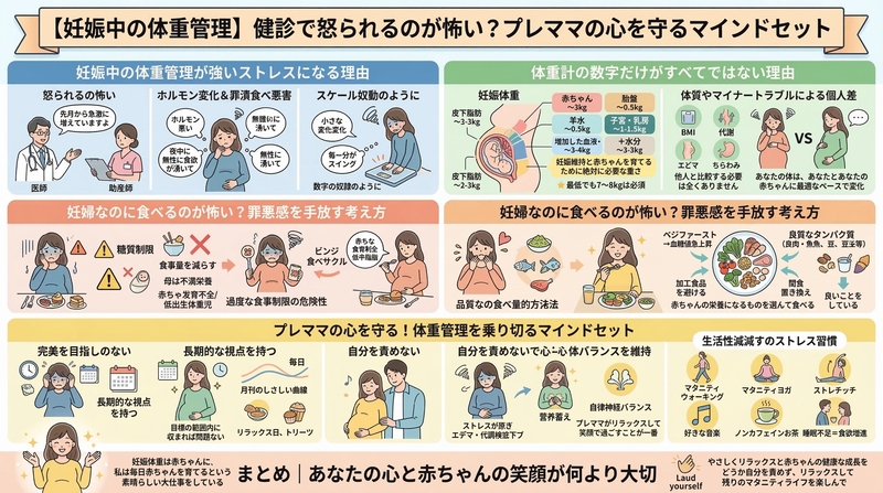 この記事では、妊娠中の体重管理でストレスを感じる根本的な理由から、健診で指摘されることへの心理的負担、そして食べることへの罪悪感を手放すための具体的な考え方について詳しく解説します。